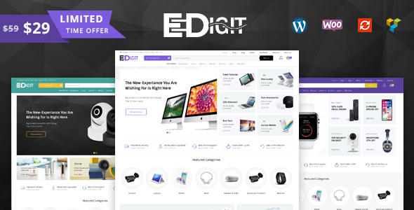 eDigit is WordPress ecommerce theme based on WooCommerce plugin. It is suitable for electronics, computer, digital, accessories, mega store, camera, phone, furniture and flowers store. It is also multipurpose theme which can be used for any kind of online store. eDigit WooCommerce theme is looking good with it’s clean and fresh design. All sub pages are customized.